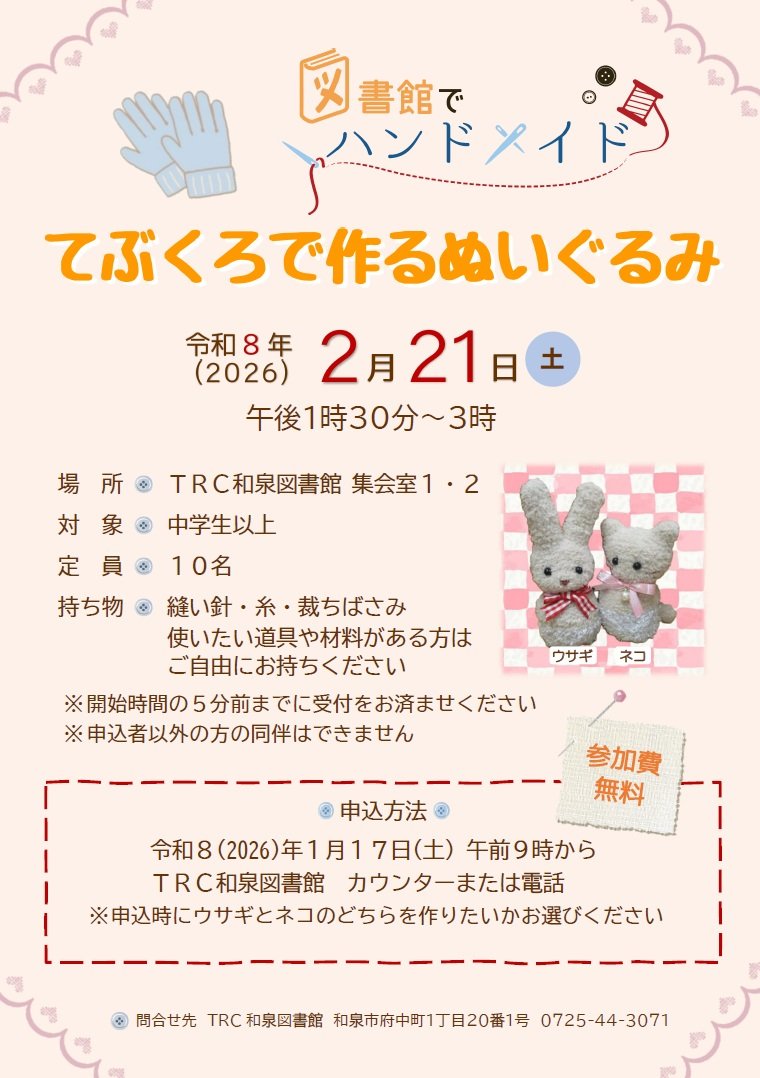 図書館でハンドメイド│てぶくろで作るぬいぐるみ:2月21日(土)